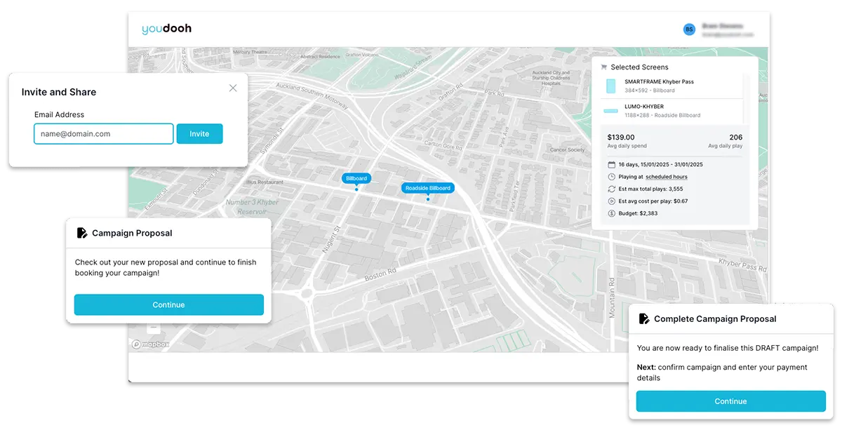 Save time: Skip the lengthy negotiations and lock in your preferred placements instantly. • Save more time: No more pulling together sitecards and budget details in spreadsheets of presentations. It’s all there! • Stay in Control: Customise and adjust 'live' proposals without having to re-share. • Convert! Reducing friction creates a more seamless experience so you can lock in those bookings. Ready to streamline your digital out of home advertising workflows? Log in to youdooh and get streamlining with Bookable Proposals!